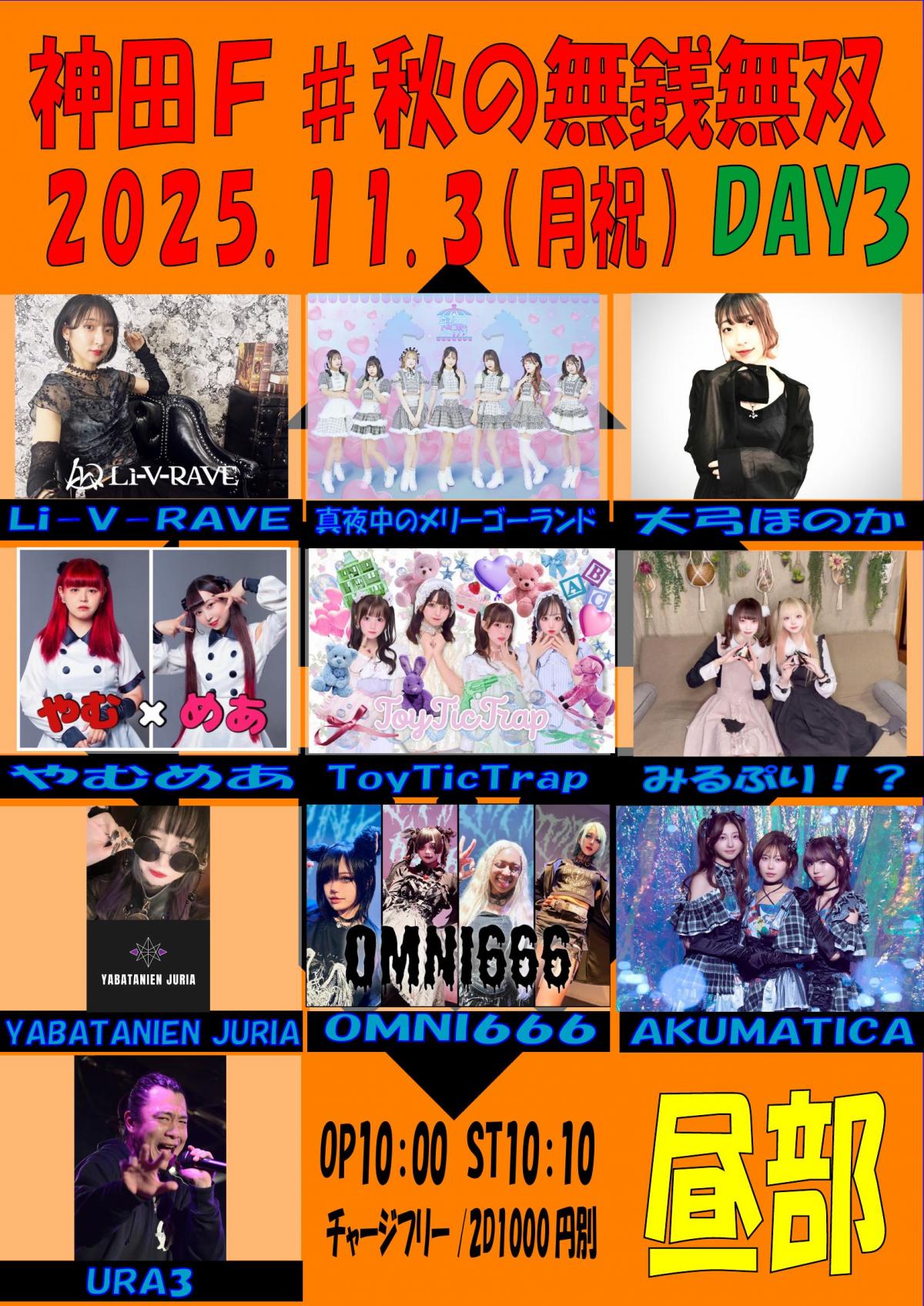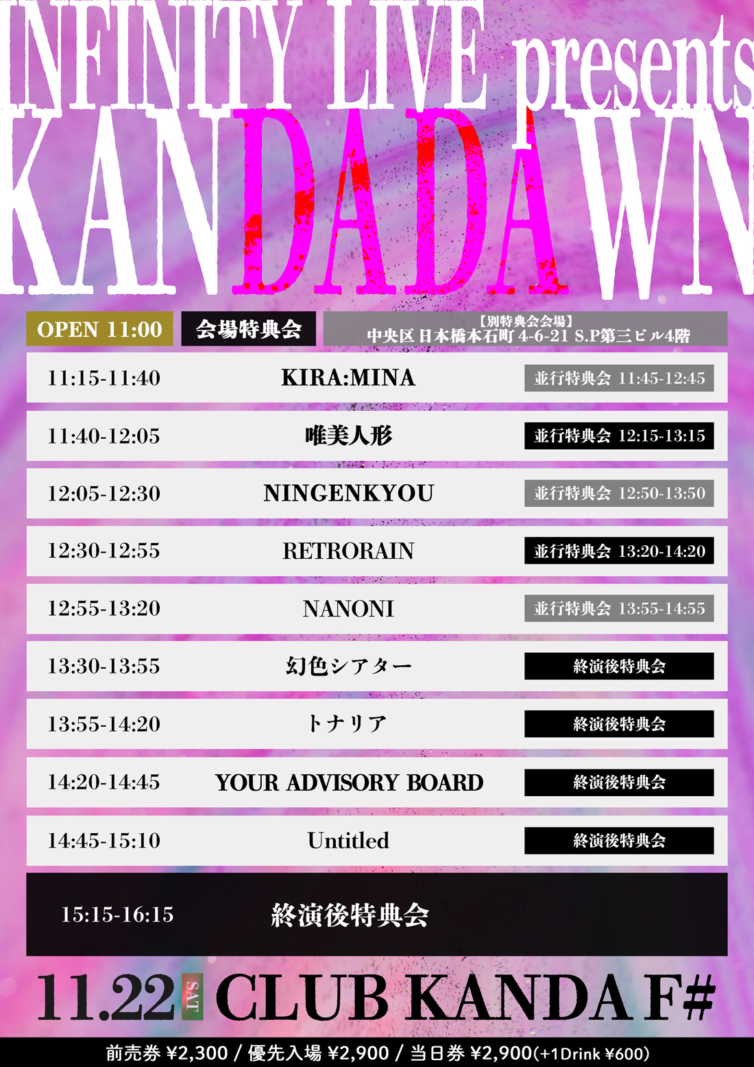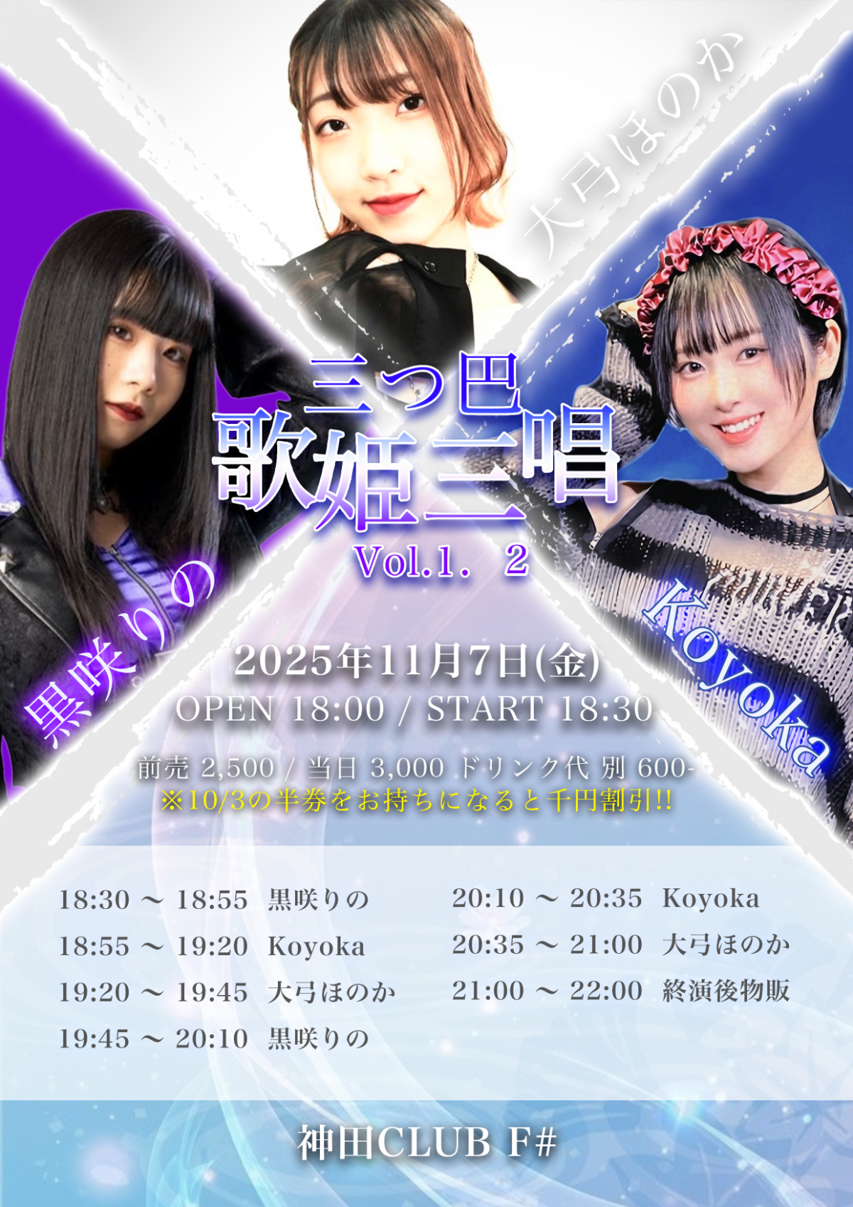 - 前方3000円,前売2500円,当日3000円,(1D600円別)前方前方