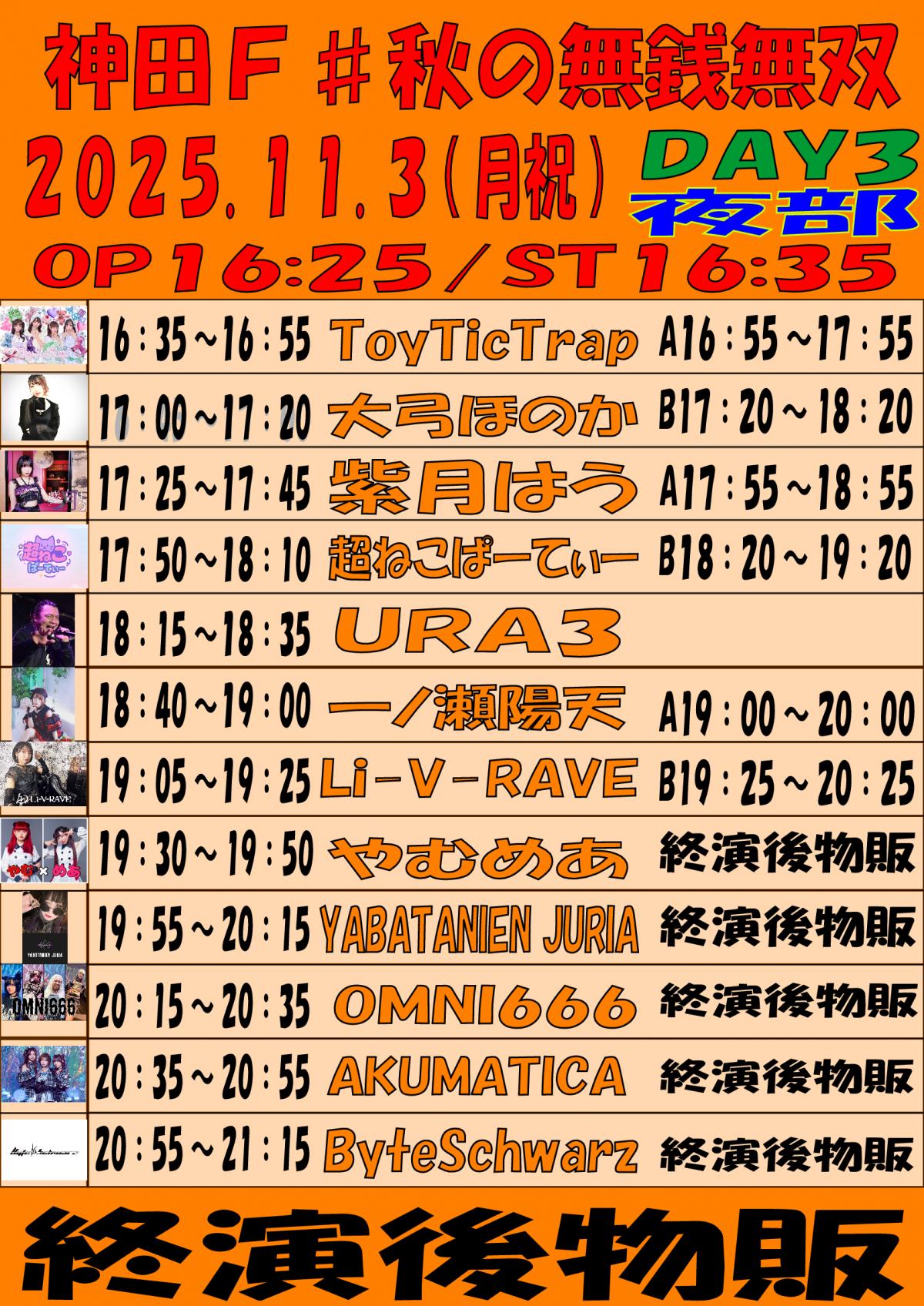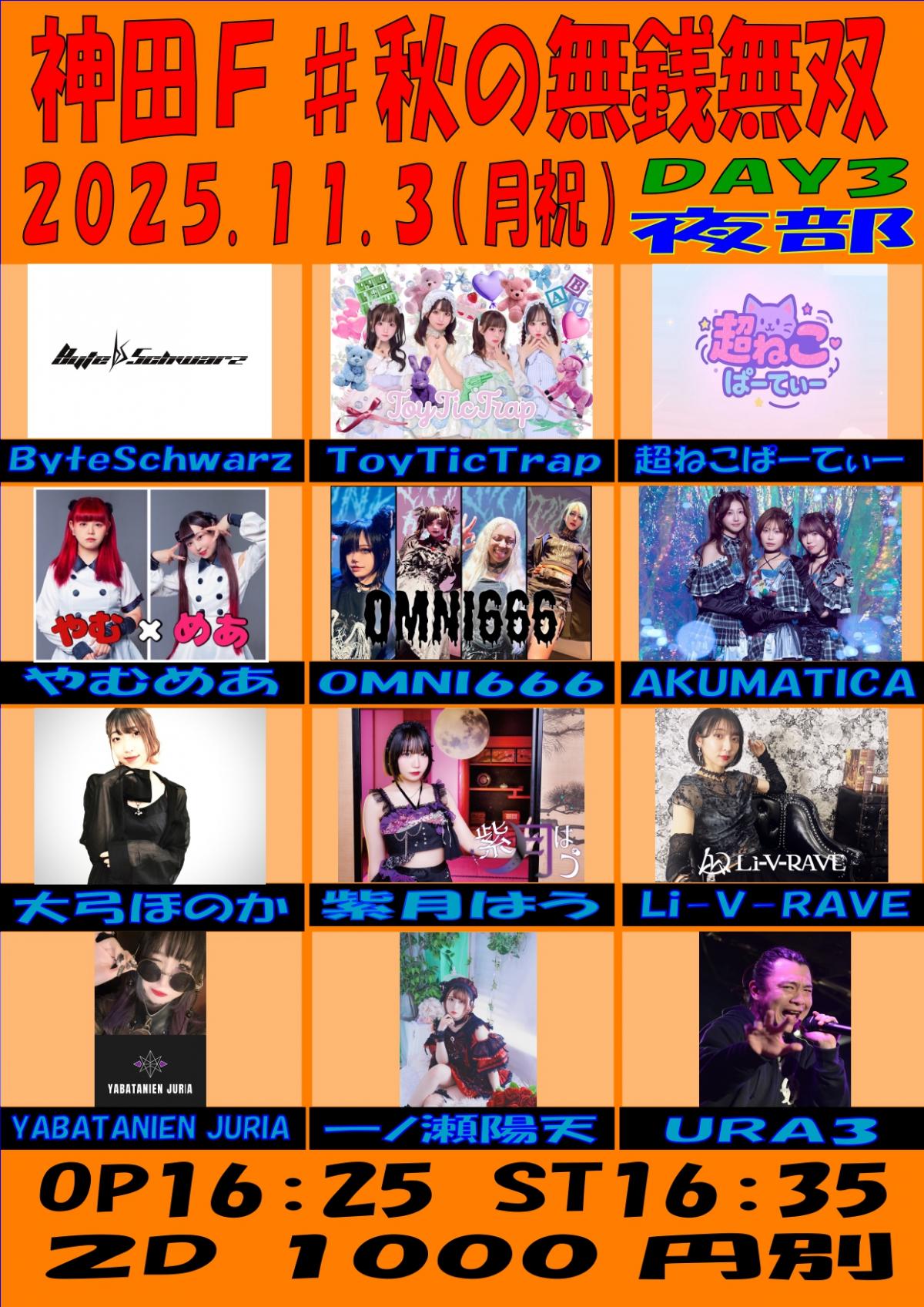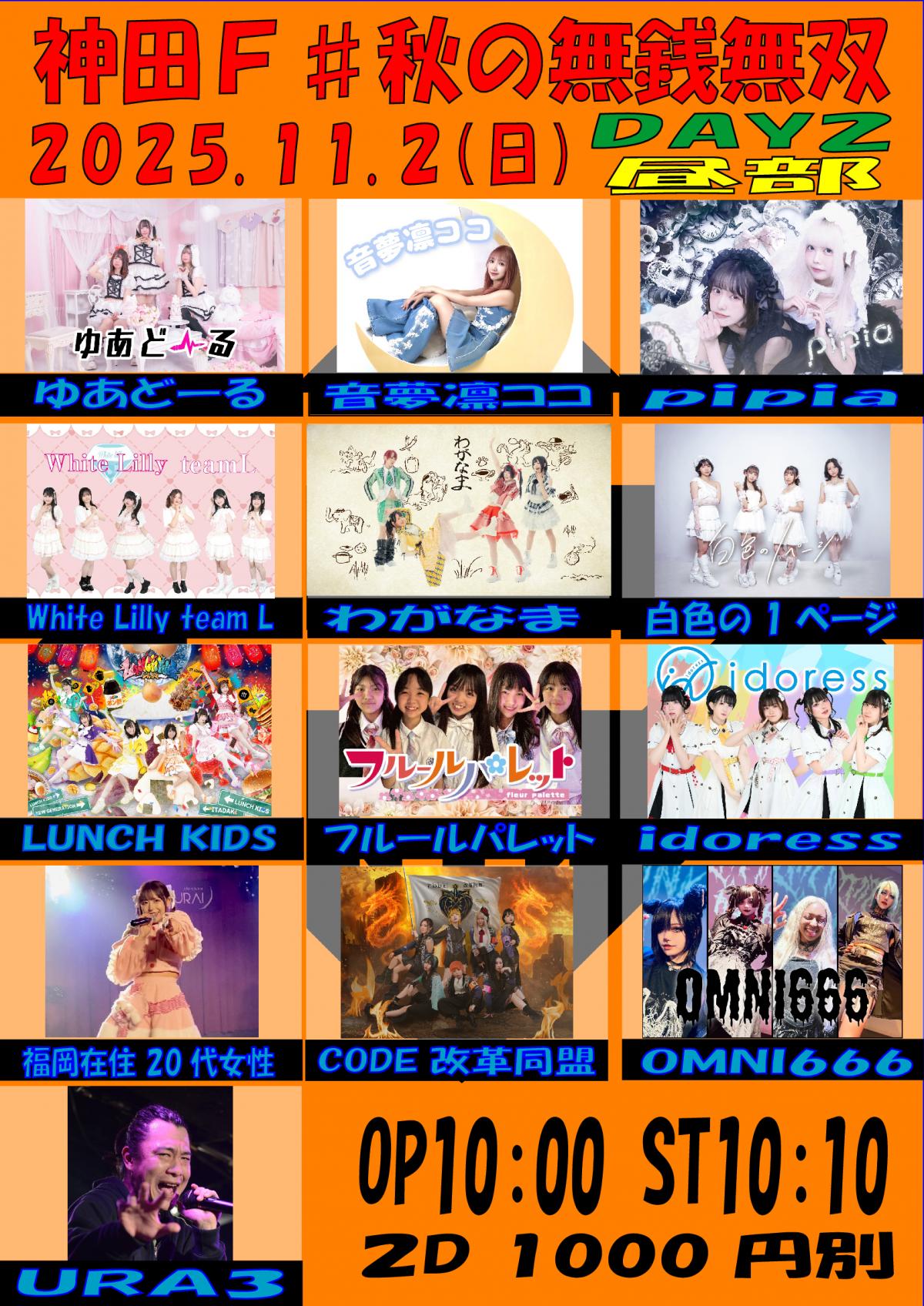 - 前方3000円,前売2500円,当日3000円,(1D600円別)前方