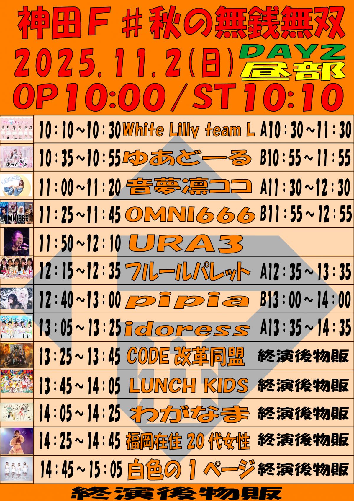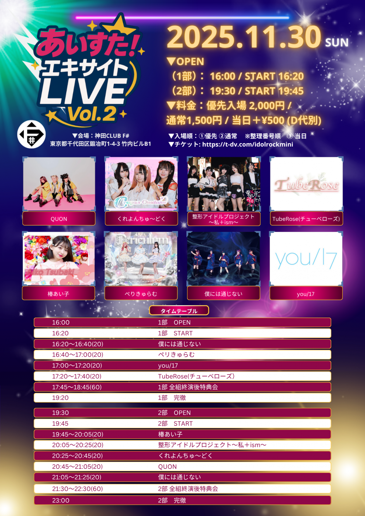 - 優先2000円,通常1500円,当日2000円,(1D600円別)