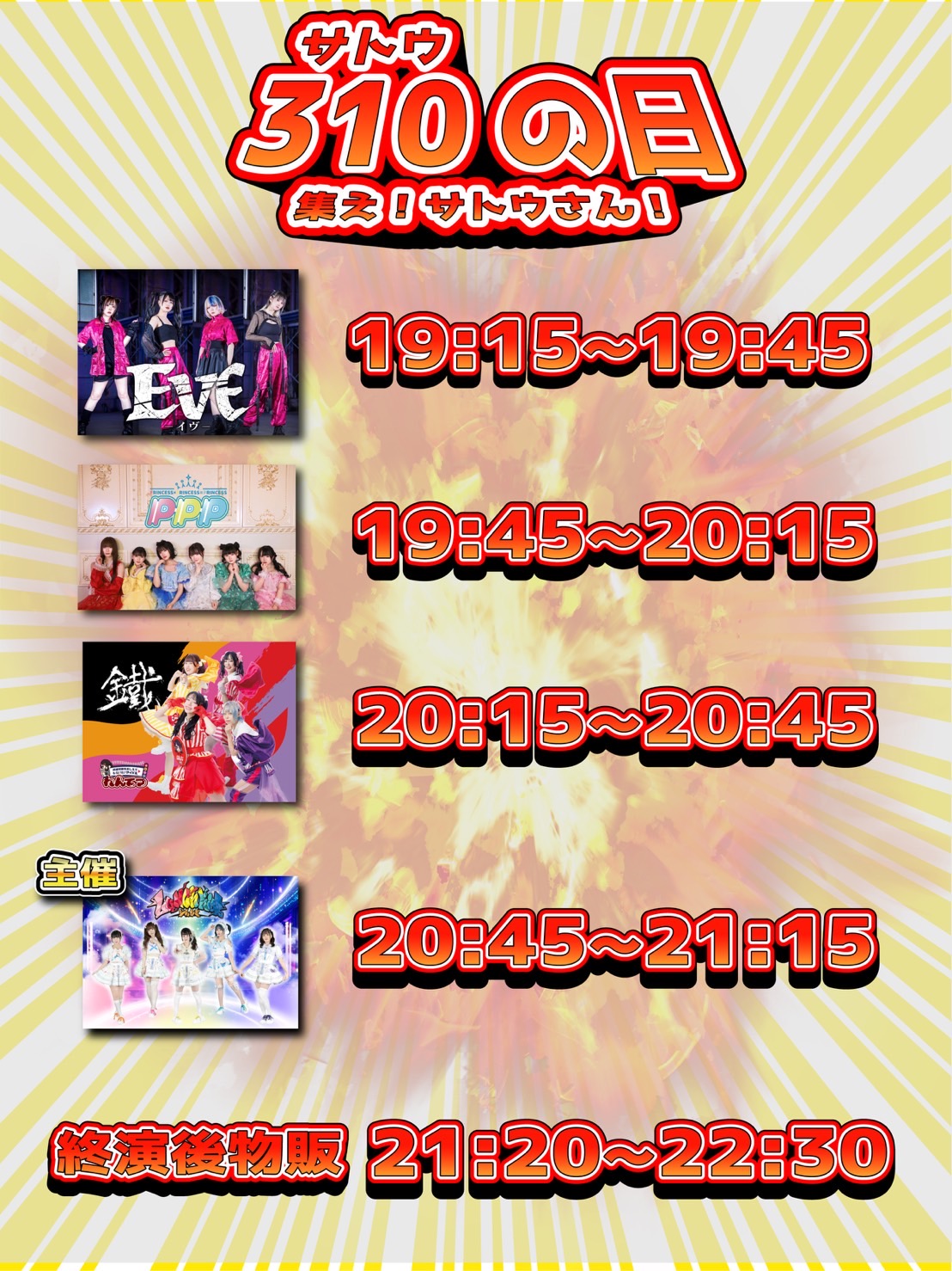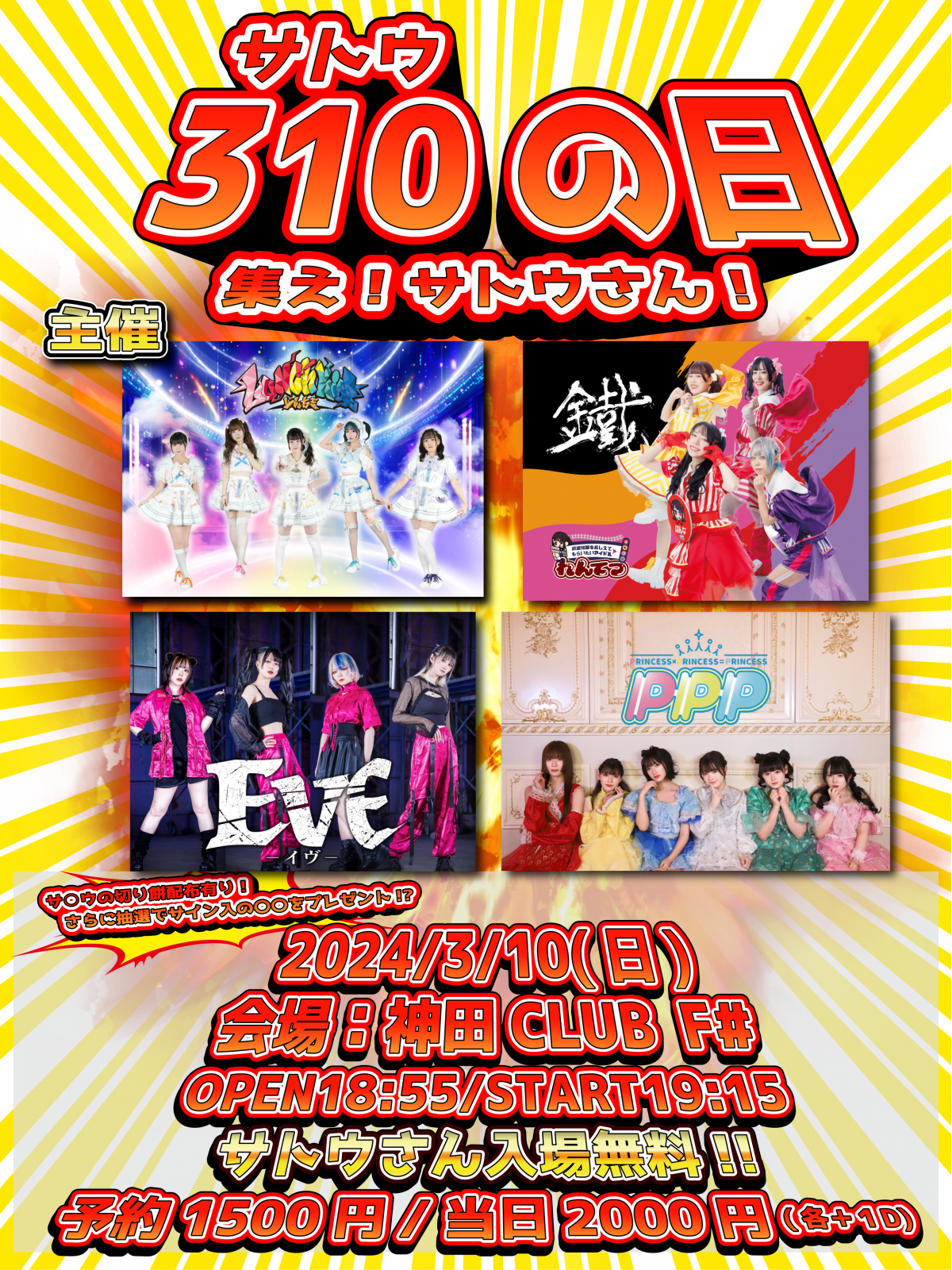 - サトウチケット0円,前売1500円,当日2000円,(1D600円別)