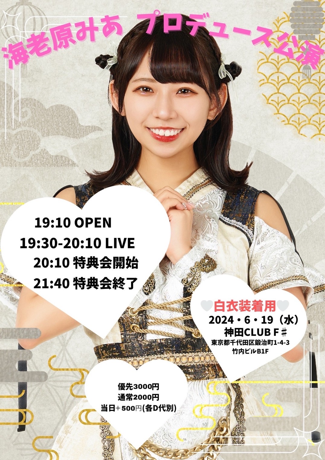 - VIP5000円,前売2000円,当日2500円,(1D600別)