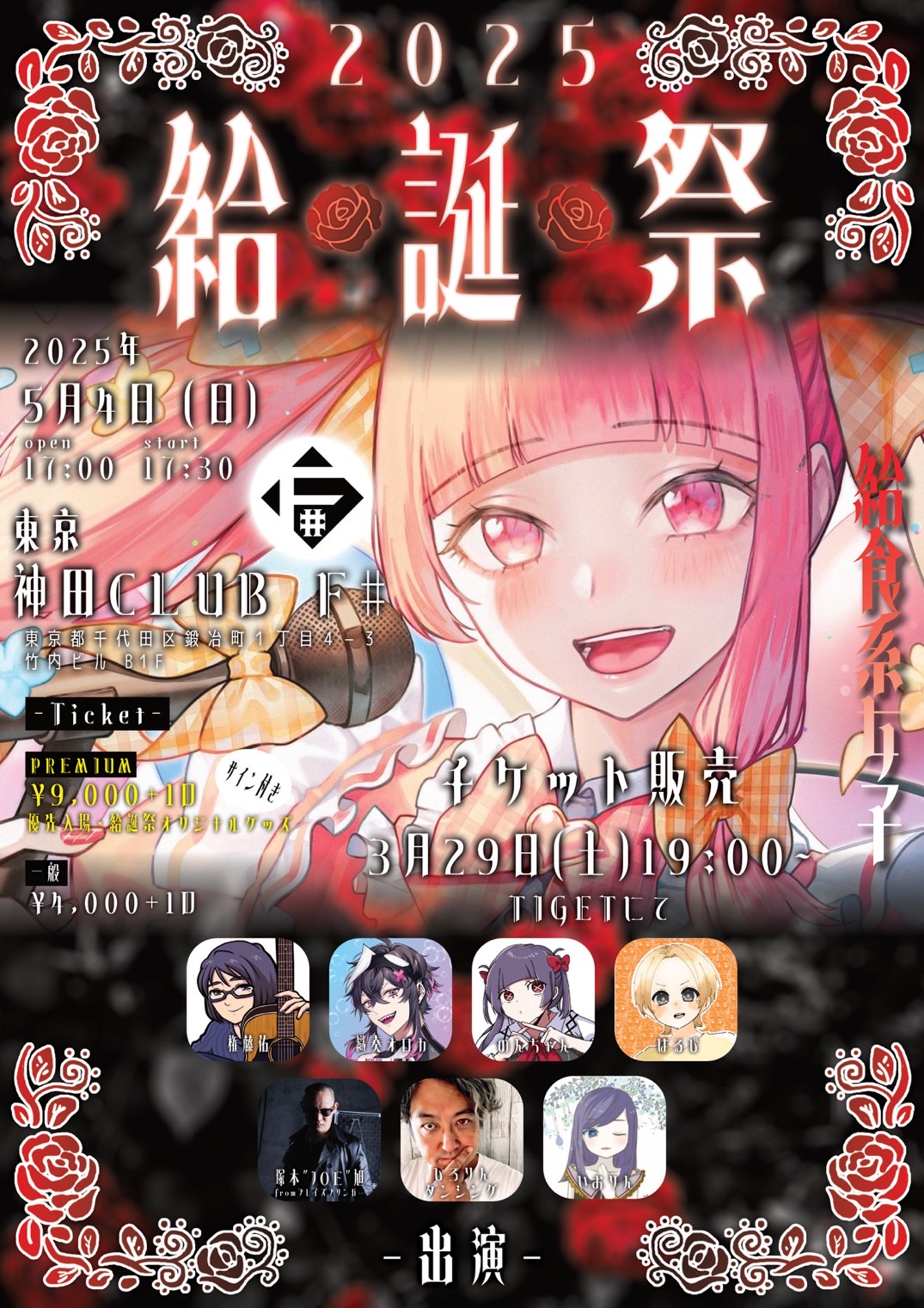 - 前売3000円,当日4000円,(1D600円別)