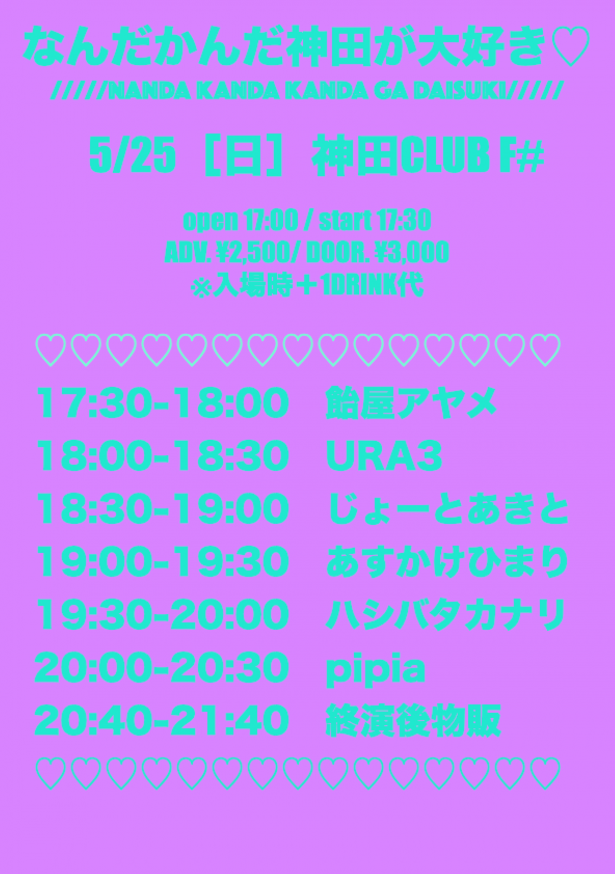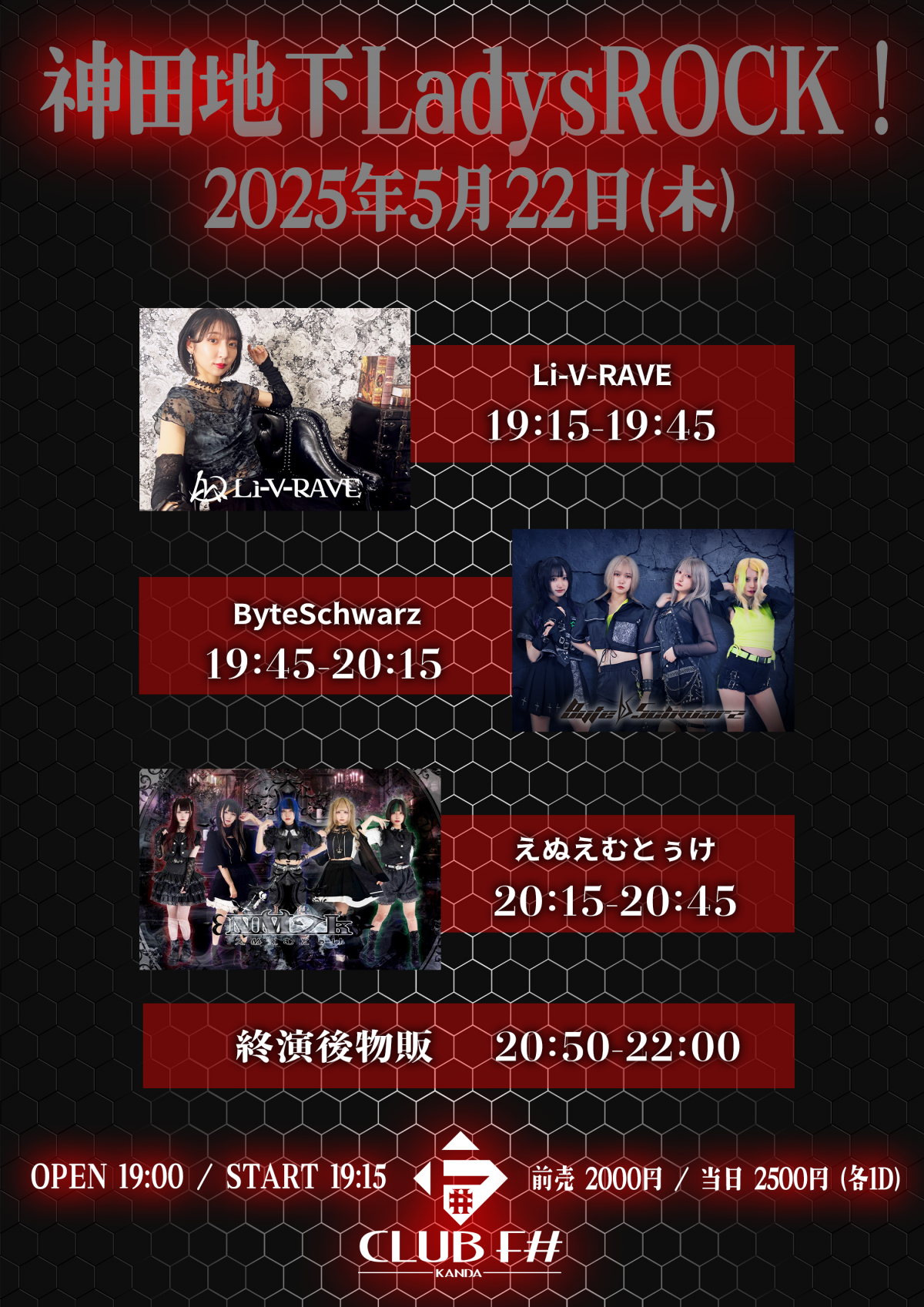- 前売2000円,当日2500円,(1D600円別)
