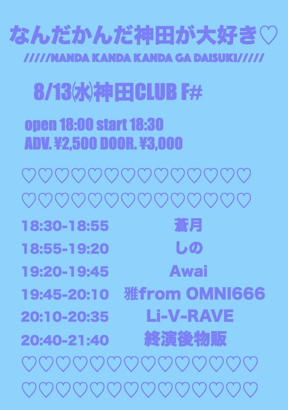- 当日3000円,(1D600円別),浴衣・甚兵衛でご来場の方は500円オフ