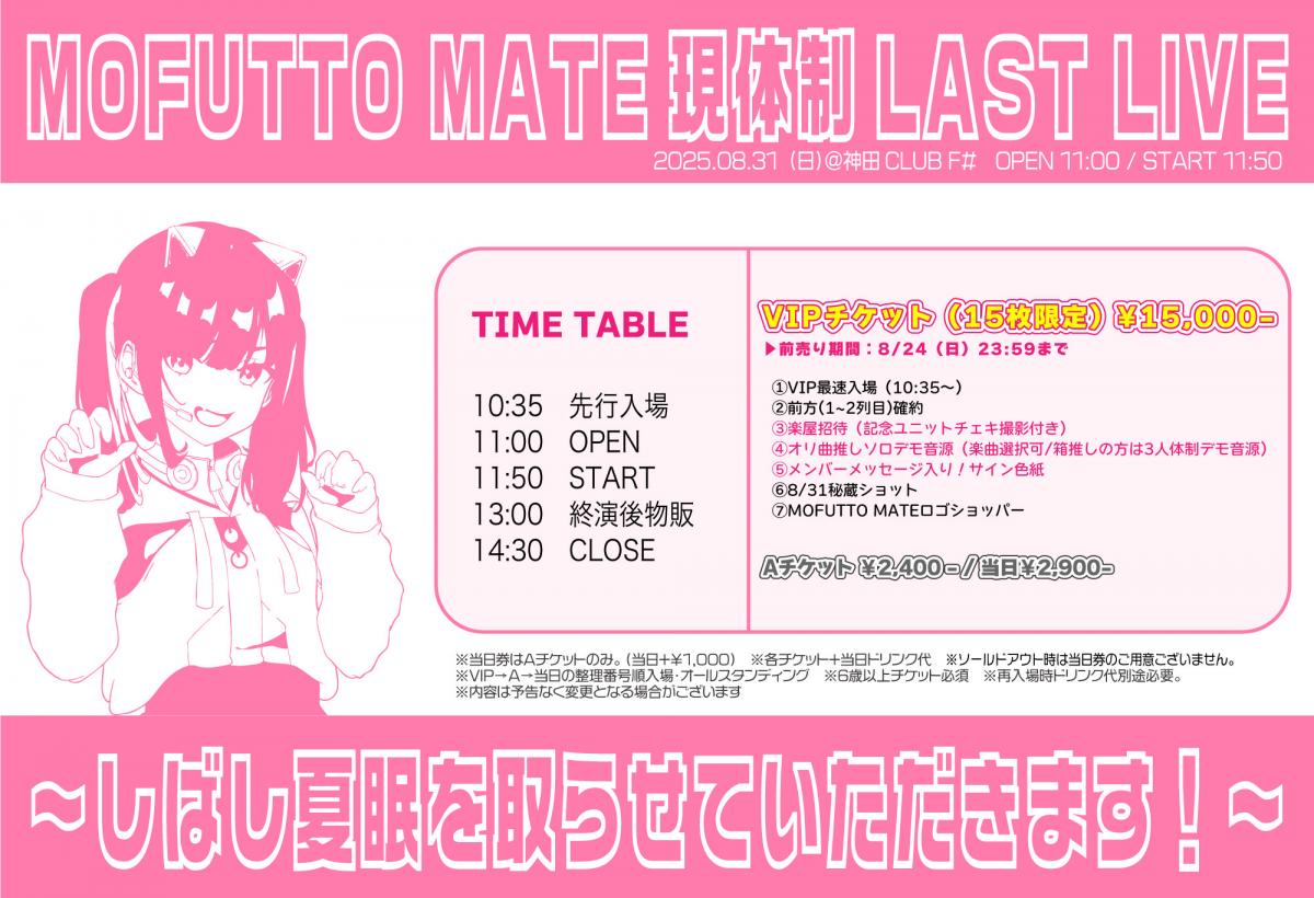 MOFUTTO MATE現体制LAST ONEMAN LIVE〜しばし夏眠を取らせていただきます!〜