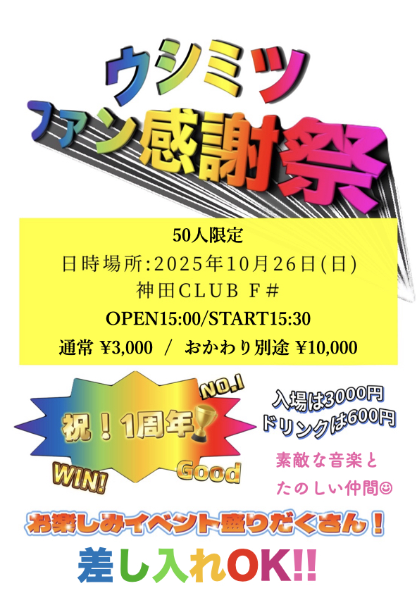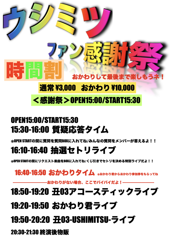 - 優先2500円,通常2000円,当日2500円,(1D600円別)優先