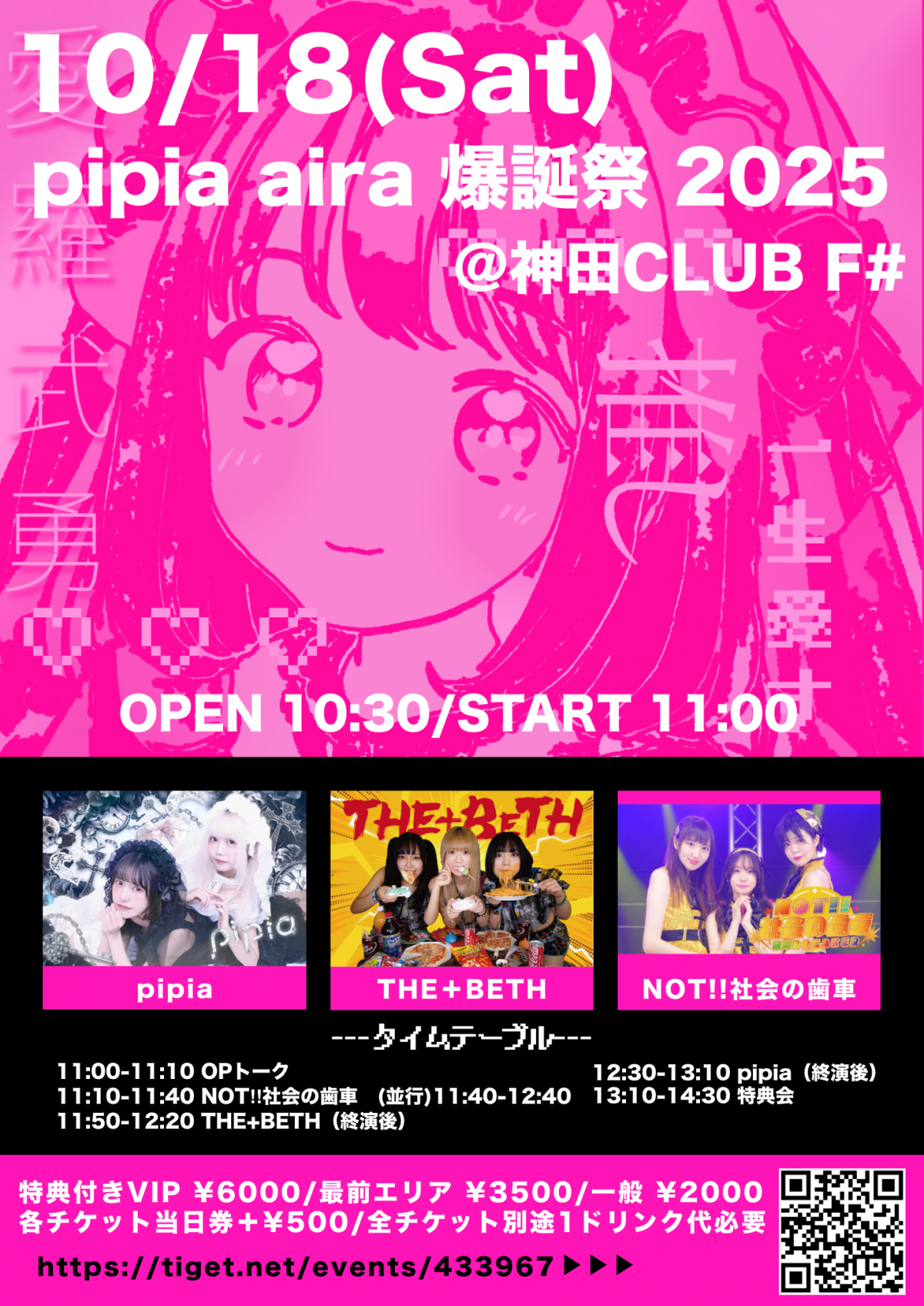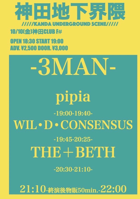 - 前方3000円,前売2500円,当日3000円,(1D600円別)前方