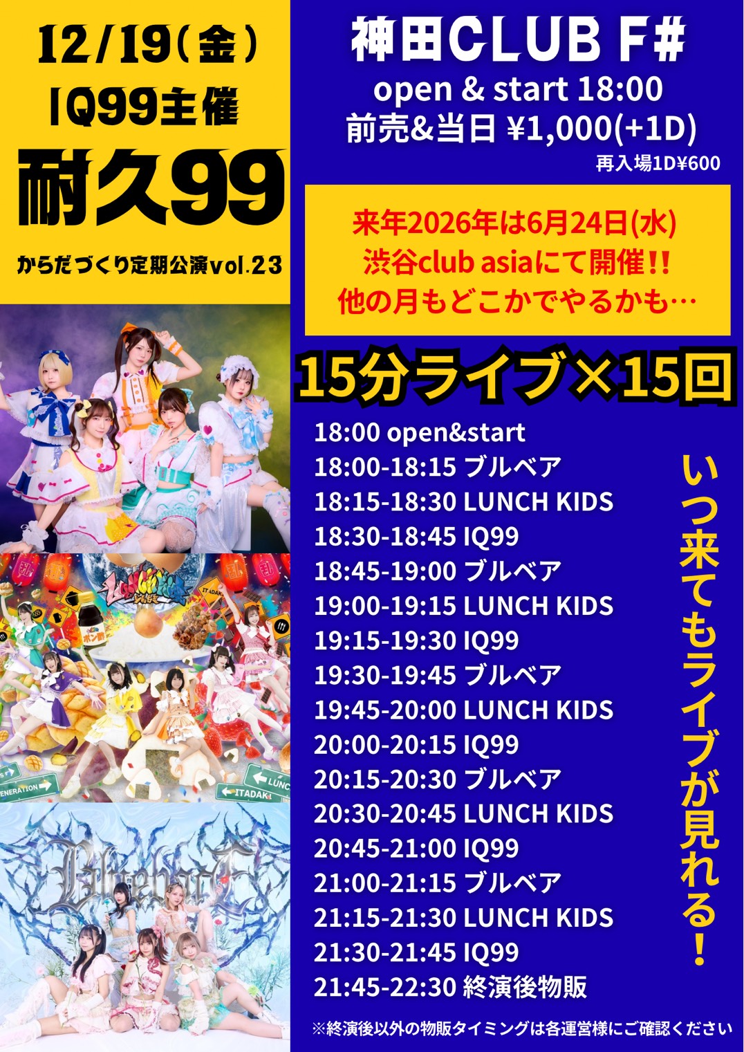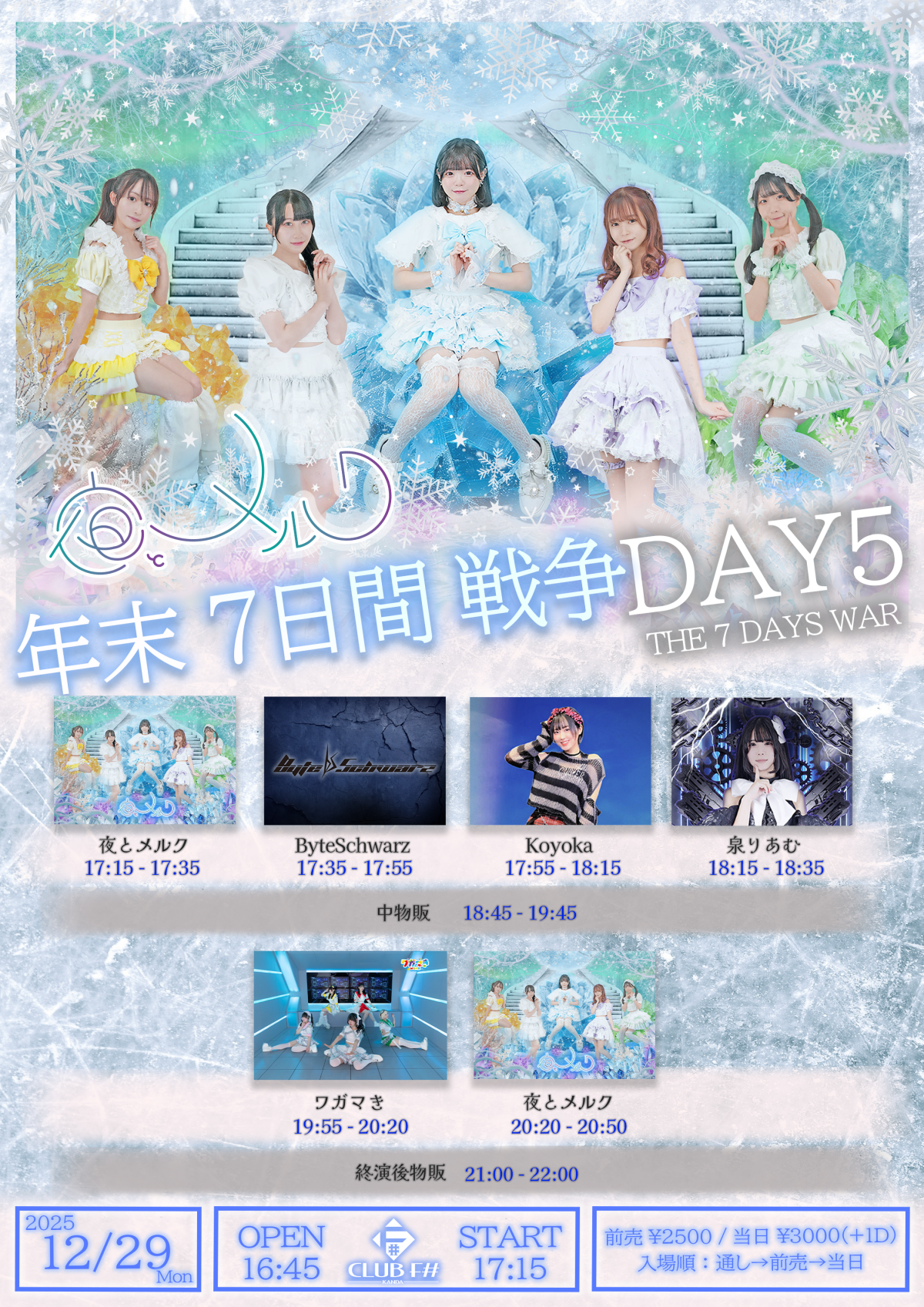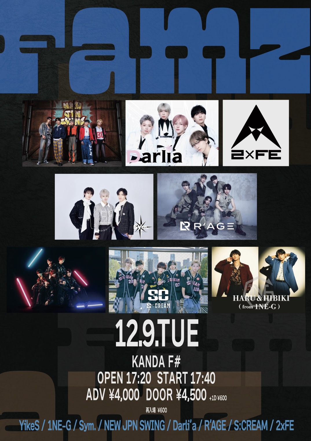 - VIP5000円,前売2000円,当日2500円,(1D600別)